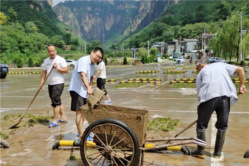 洪水猛如兽,印证了洪灾的无情与肆无忌惮,也见证了洪水灾害的极具摧毁性,更验证我们众志成城,不畏艰难,战天斗地的英勇景象。感恩团结,激情如火。在景区领导们的正确带领下,太旅人用智慧和汗水同心协力谱写的一曲抗洪抢险的不朽赞歌,这首铿锵的战歌每一个音符如同闪亮的星星与自然风光相得益彰,相映成趣,诠释着太行山大峡谷山美、水美、人更美······